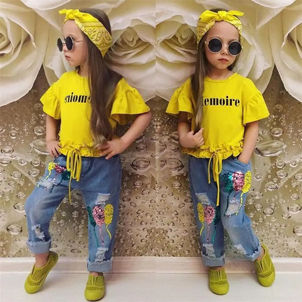 Special Offer for 2PCS Toddler Baby Girl Clothes Outfit T-shirt Tops+Ripped Denim Jeans Pants Set