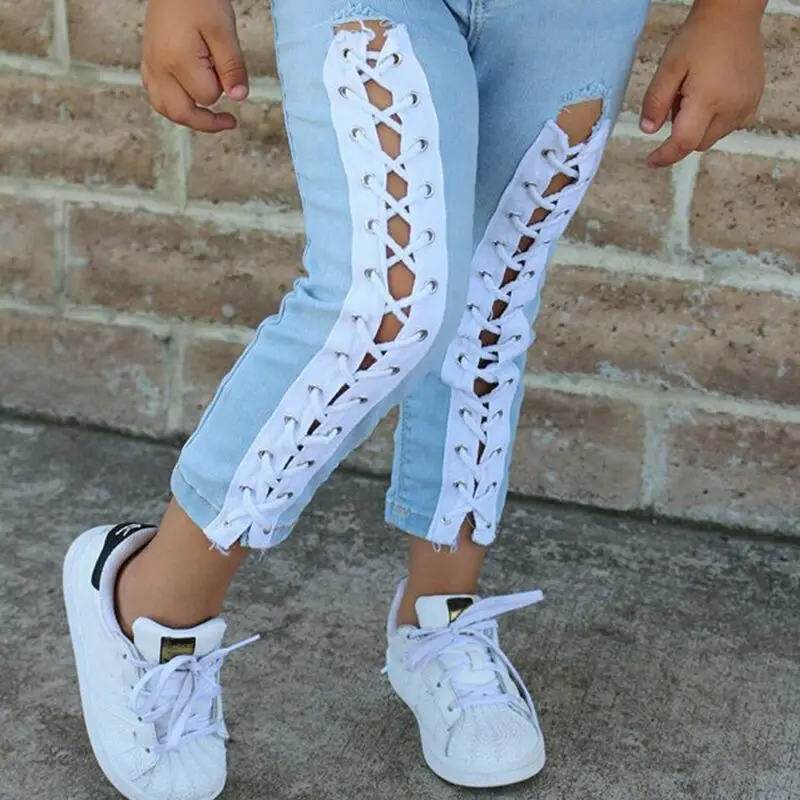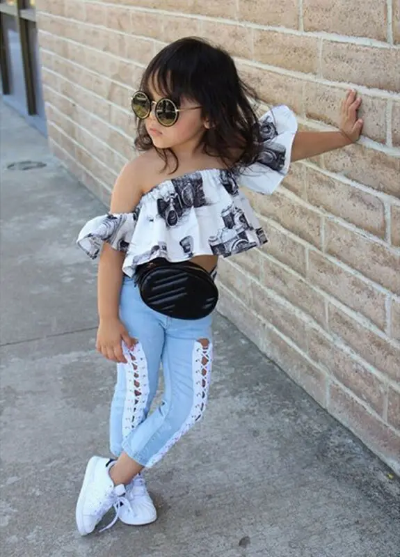 Special Offer for Toddler Kids Baby Girls Off Shoulder Tops+bandage Jeans Pants Outfits Clothes