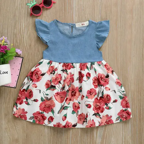 Buy Toddler Kids Baby Girls Summer Blue Fly Sleeve Sweet Holiday Cute Floral Denim Jeans Dress Summer S Right Here and Right Now Just for USD US $4.34, Price will be rise up at any time without notification and I cant guaranted that the stock is still available tommorow or next hour. So Please Save It Now!