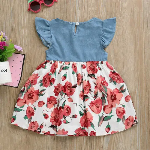 0 Response to " Toddler Kids Baby Girls Summer Blue Fly Sleeve Sweet Holiday Cute Floral Denim Jeans Dress Summer S"