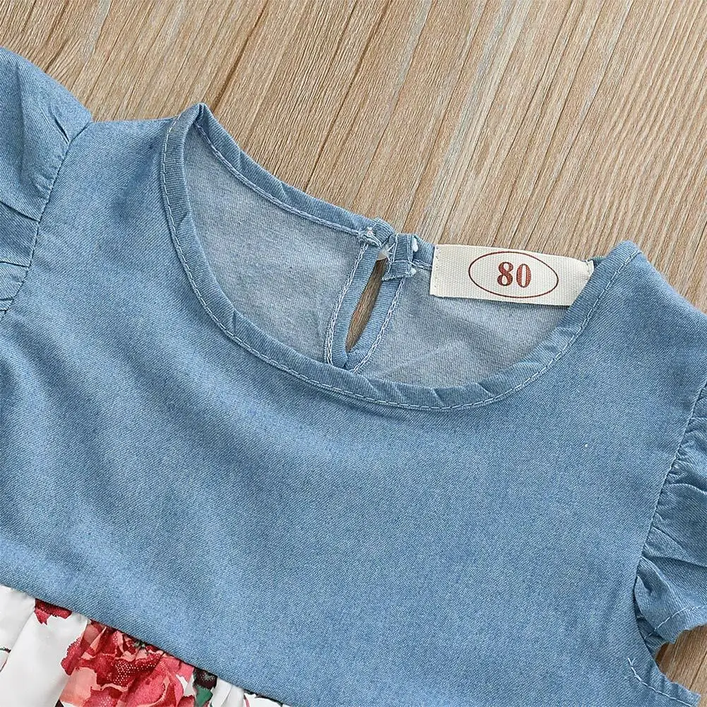 Limited Offer of Toddler Kids Baby Girls Summer Blue Fly Sleeve Sweet Holiday Cute Floral Denim Jeans Dress Summer S
