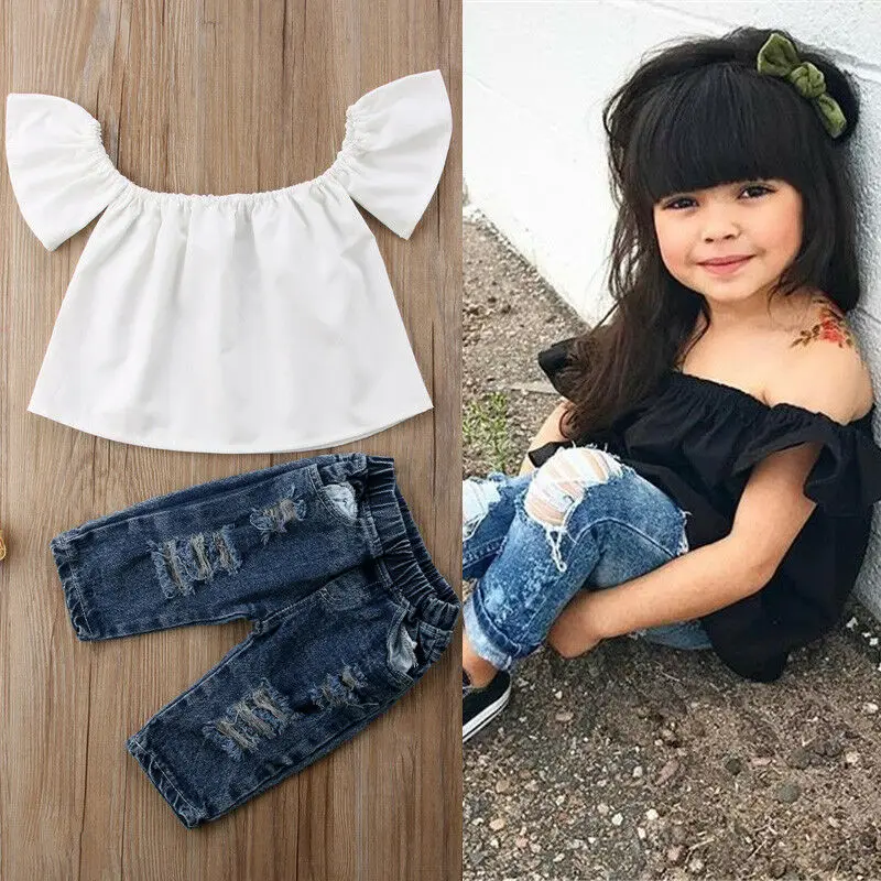 Buy USA Toddler Kid Baby Girl Off Shoulder Tops Denim Pants Jeans Outfit Set Clothes Right Here and Right Now Just for USD US $6.93, Price will be rise up at any time without notification and I cant guaranted that the stock is still available tommorow or next hour. So Please Save It Now!